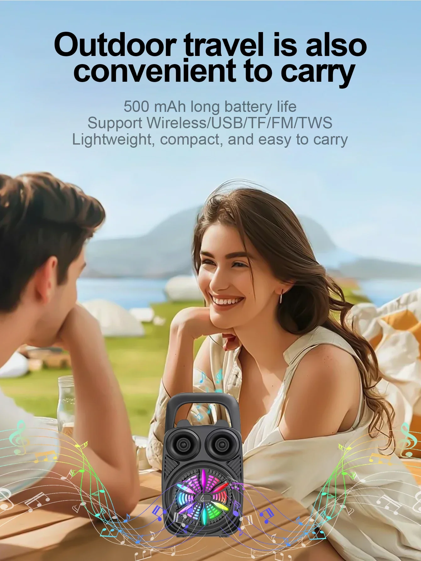 500mAh Bluetooth Speaker High Power Bluetooth Speaker TF Udisk Karaoke Handheld Sound Subwoofer for Dance