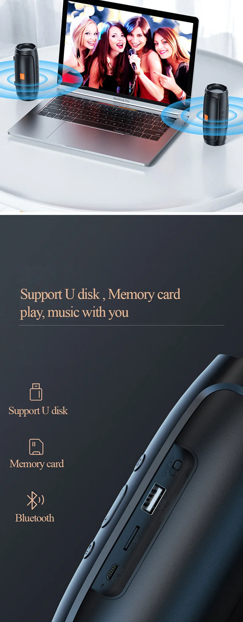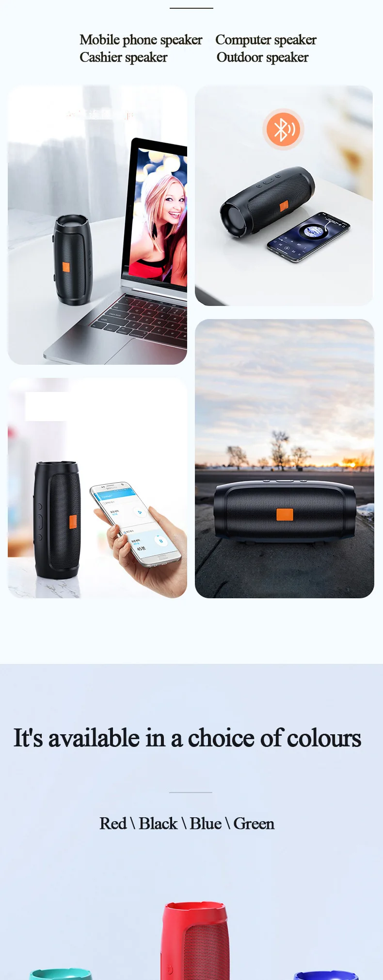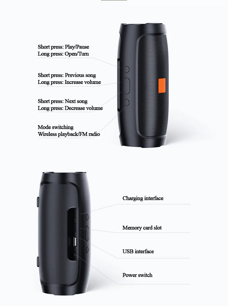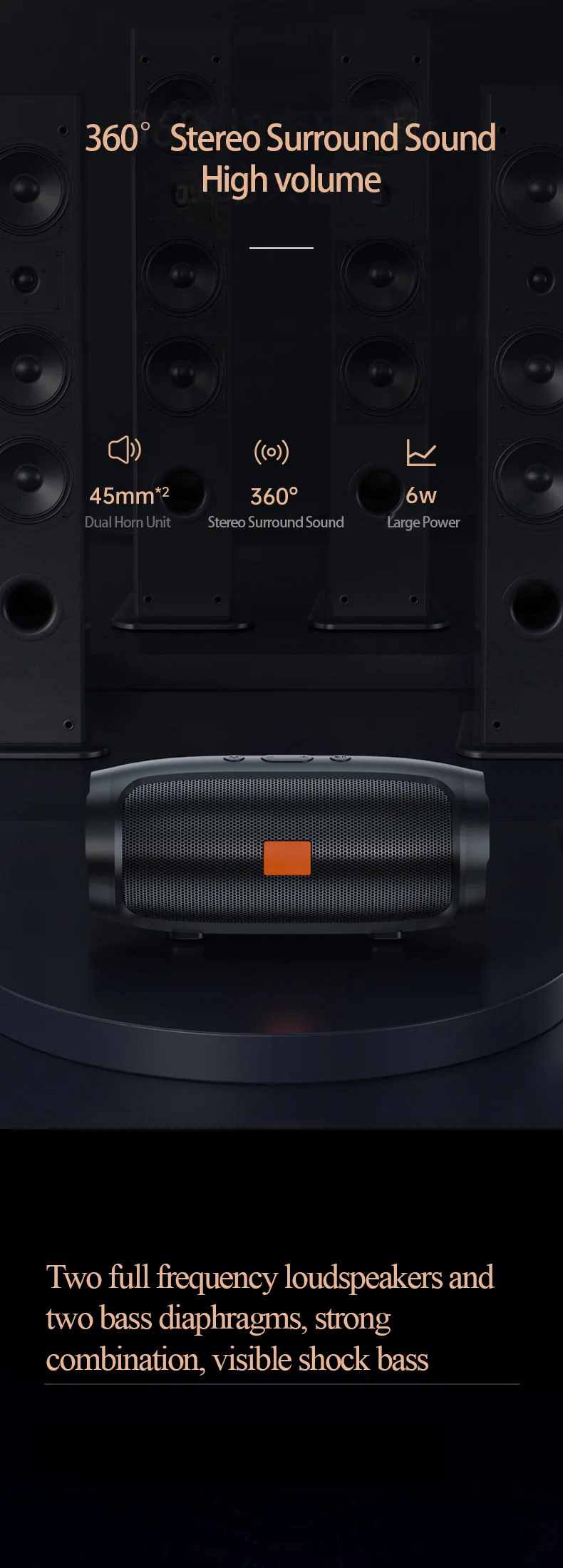 Portable Subwoofer Bluetooth Speakers Outdoor Stereo Surround Waterproof Loudspeaker Wireless Sound Box Support FM Radio TF Card