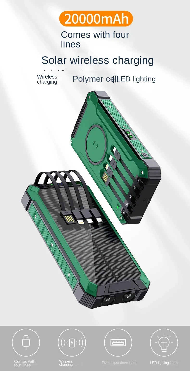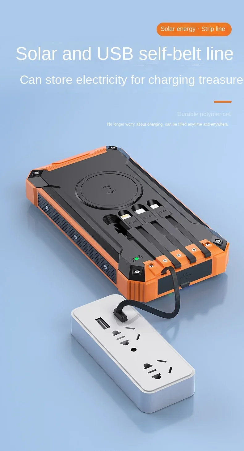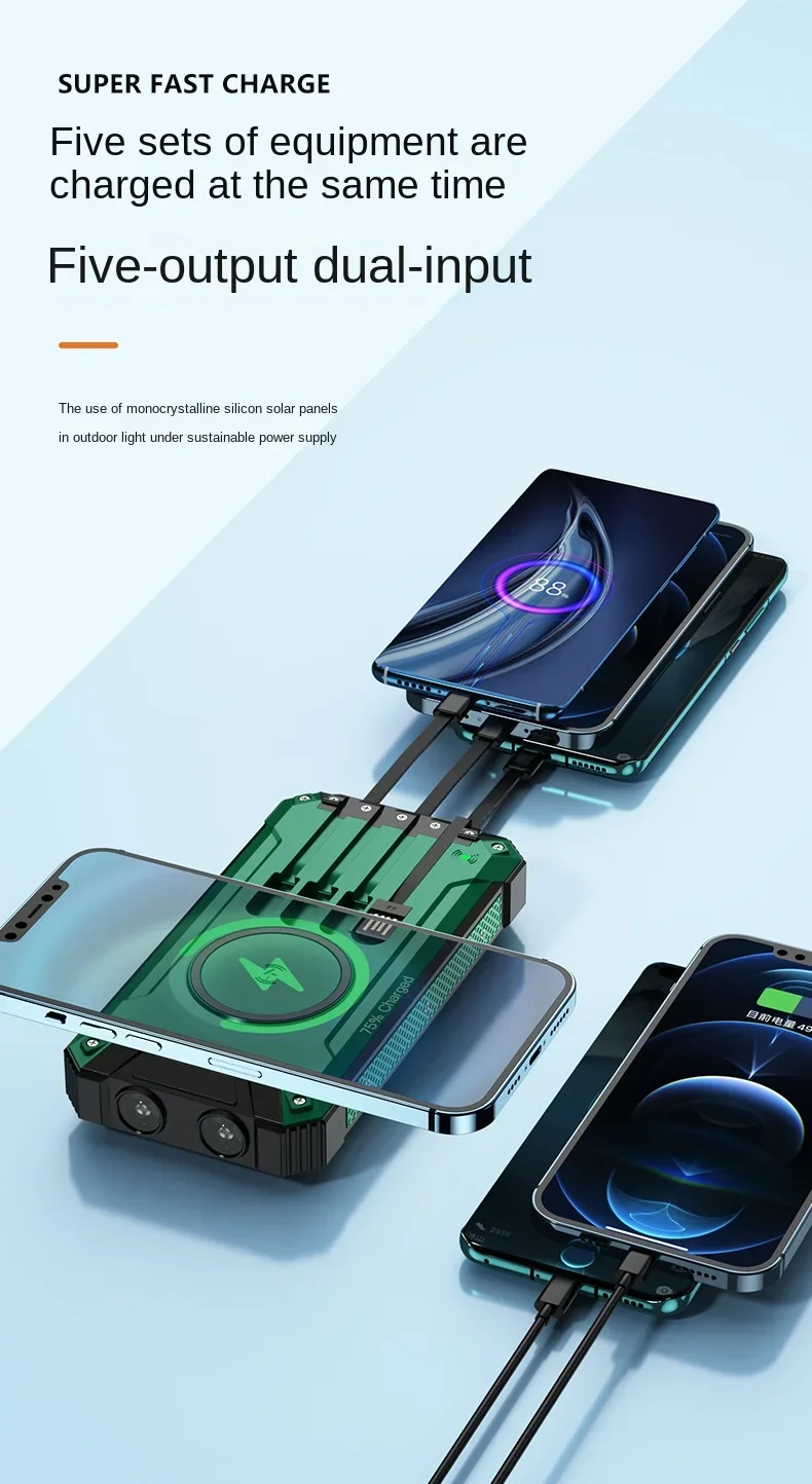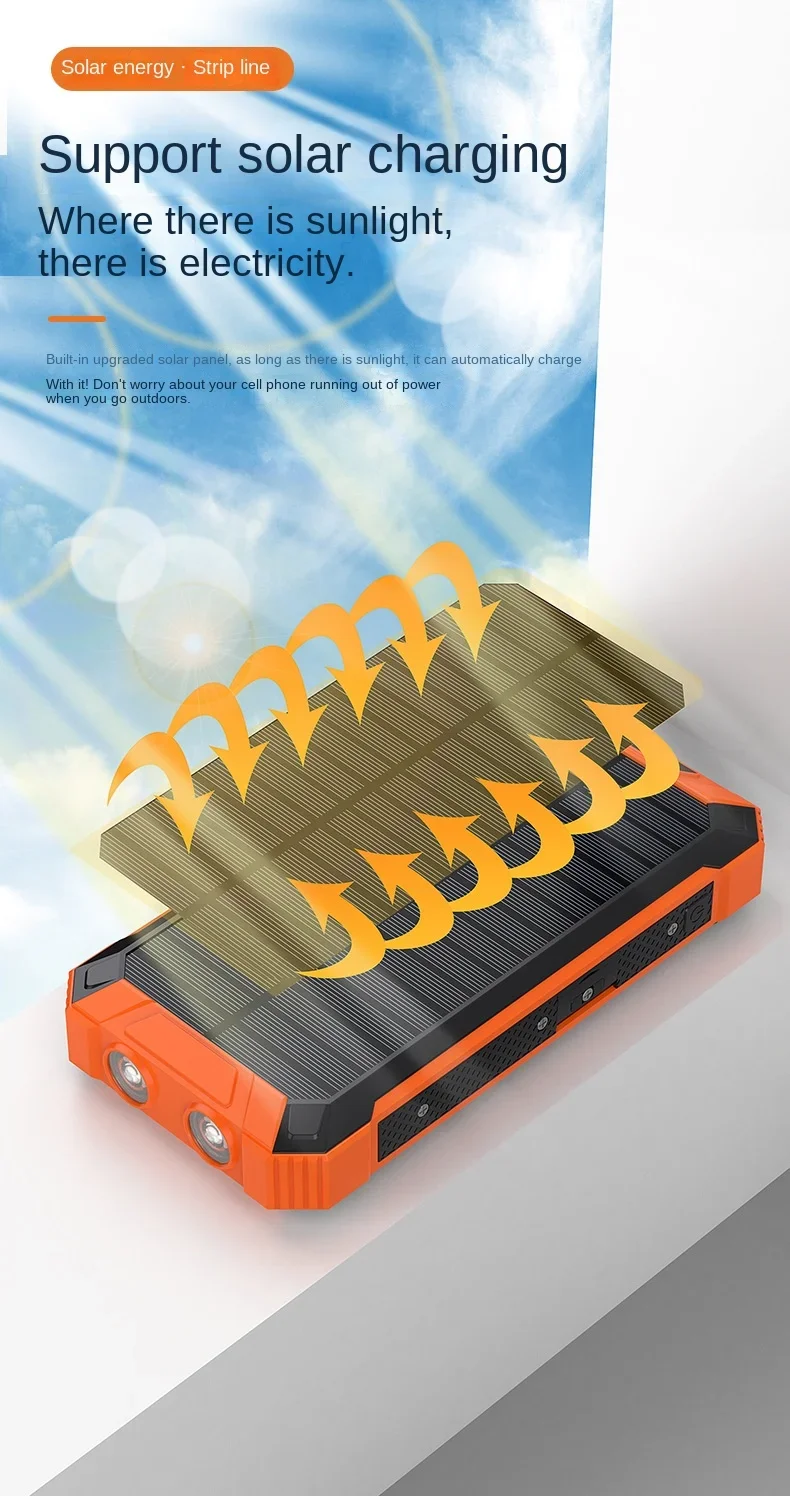 Wireless Charger Solar Portable Power Source 20000mah Mobile Phone Outdoor with Line Power Bank Logo
